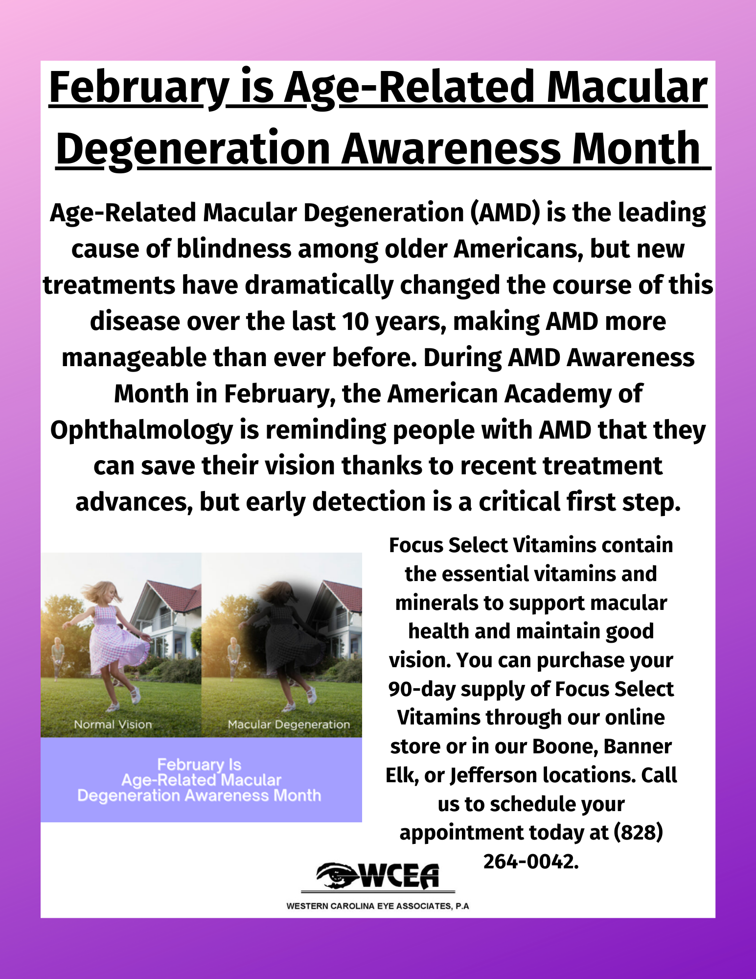 February is Age-Related Macular Degeneration Awareness Month Amber ChampionFebruary 22, 2024 Facebook0 Twitter Tumblr Pinterest0 0 Likes